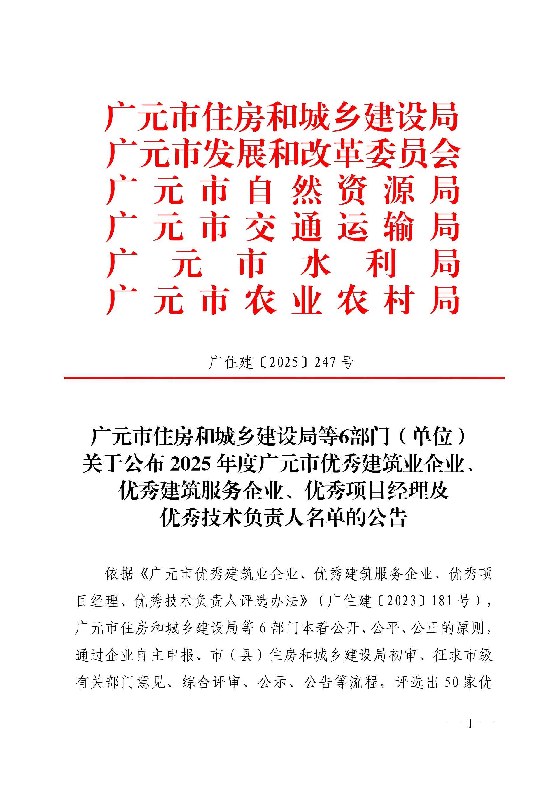 近日,廣元市住房和城鄉建設局等6部門(單位)公布了2025年度廣元市優秀建筑業企業、優秀建筑服務企業、優秀項目經理及優秀技術負責人名單,路橋集團獲評“2025年度廣元市優秀建筑業企業”,副總經理母健全獲評“2025年度廣元市優秀技術負責人”。